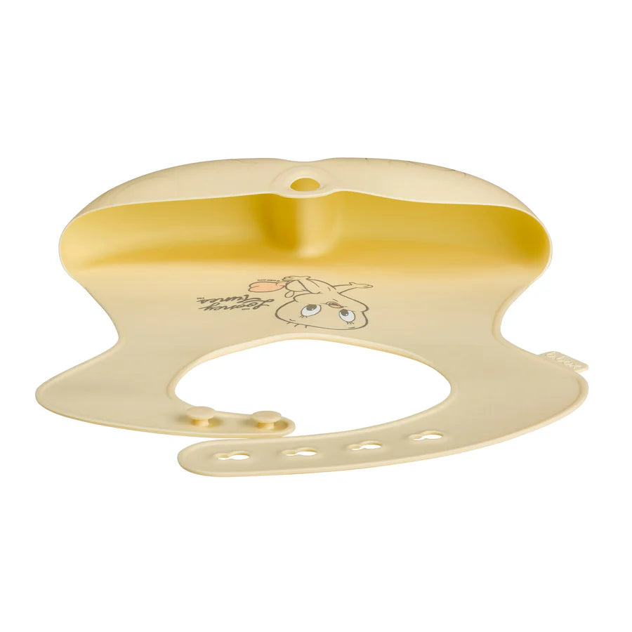 What a catch! This perfect take anywhere bib features a deep stay open pocket, structurally designed to help catch more food and liquids, keeping baby cleaner, drier and more comfortable at mealtimes. Made from non-toxic, food-grade silicone that retains a smooth non-stick surface, even when wet. Wipes clean, is dishwasher safe and simply rolls and fastens for on the go eats. Includes an easy to adjust closure for the right fit, tapered shoulders that allow for greater arm movement and a smooth cushioned comfort edge. Available in a range of beautiful contemporary colours to suit every baby, every wear!
