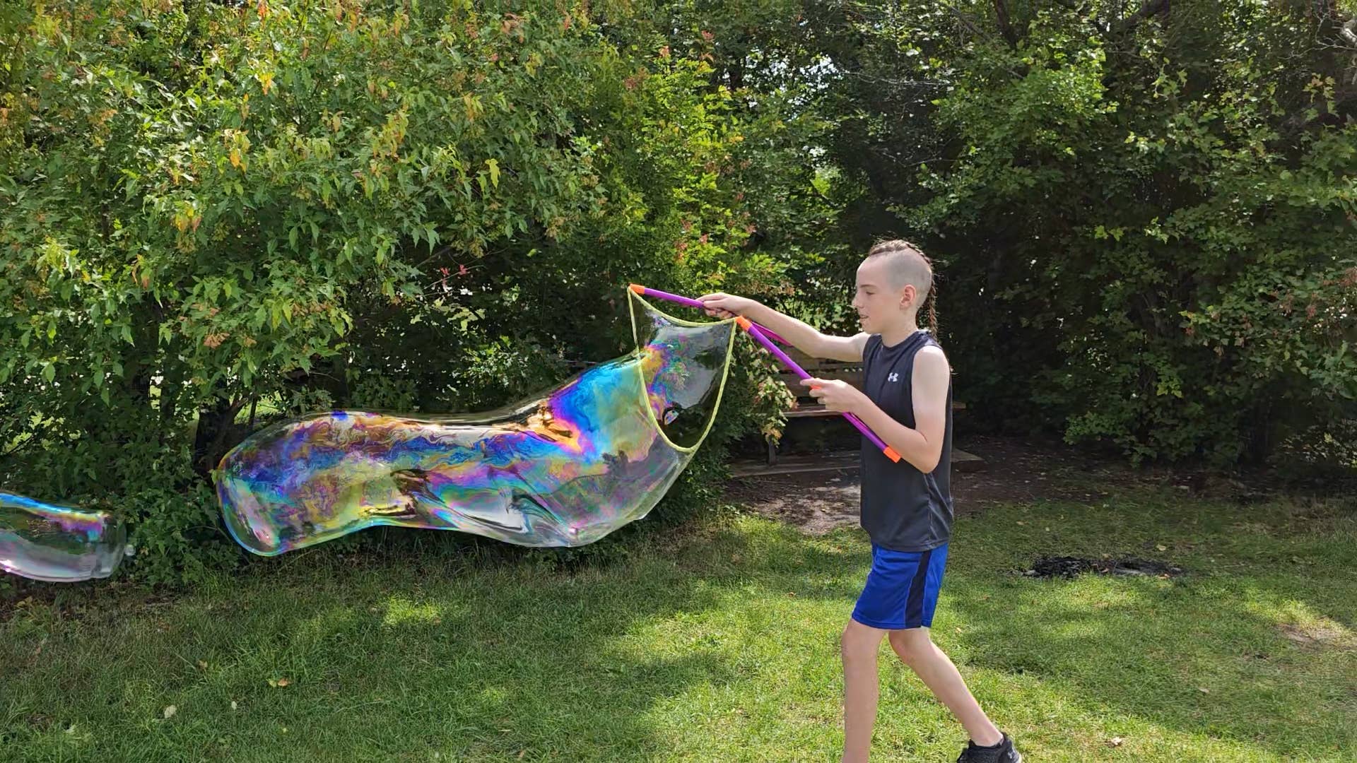 Unleash the ultimate bubble fun with Crazy Yoobbles Bubbles Giant Bubble Solution! Our unique bubble solution and specially-designed for Giant Bubble Wand can make humongously, ginormously big bubbles that can get up to 10 feet long! This kit comes with a 16oz bottle of our special Crazy Yoobbles Giant Bubble Mix, Giant Bubbles Wand and tray. NONE TOXIC ECO FRIENDLY SOLUTION AGES 5+. Package has QR code to watch product video! Refill Bags are available!