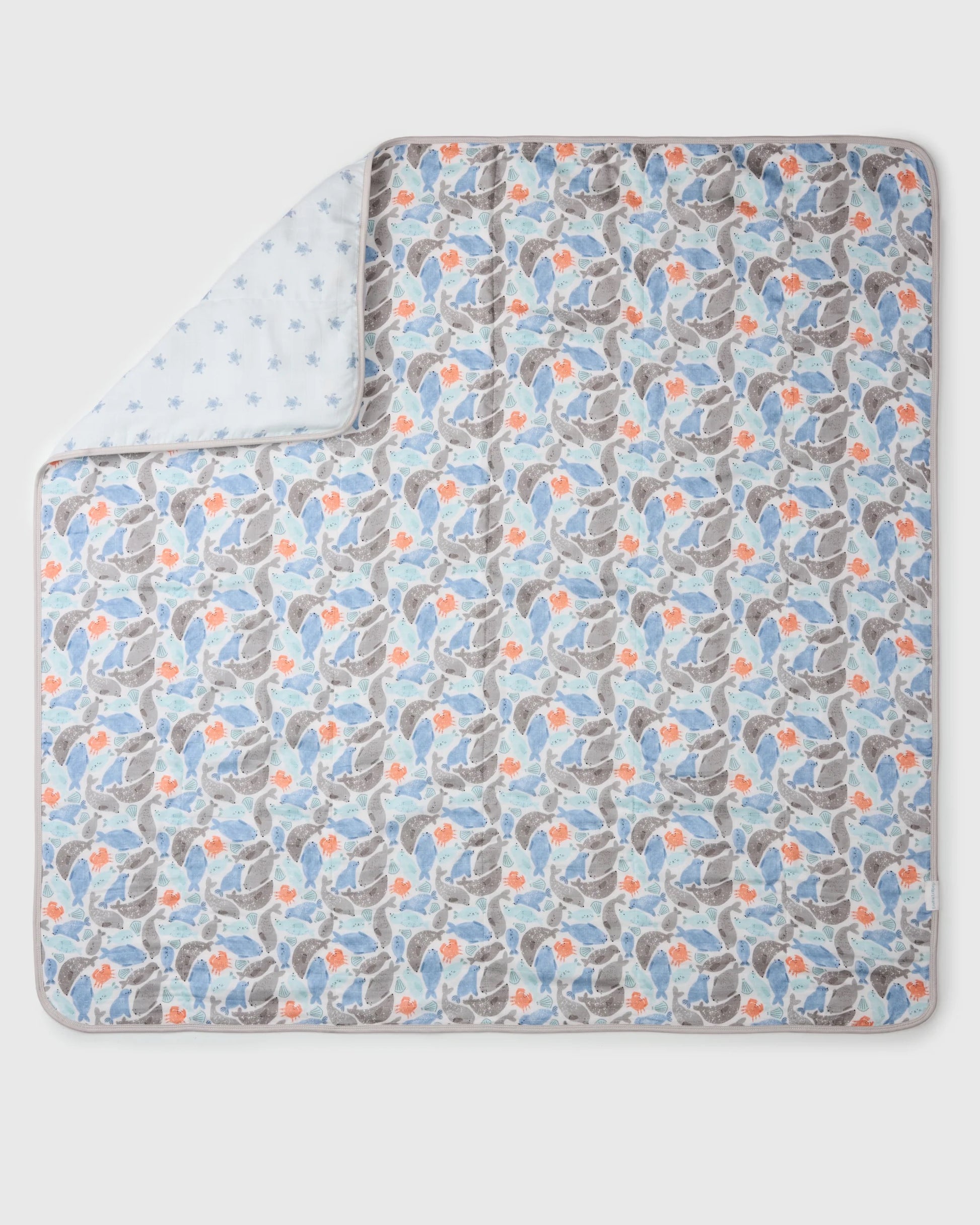 Our muslin quilts made from four layers of bamboo and cotton muslin fabric offer the perfect amount of breathable warmth and coziness to keep the baby comfortable and relaxed. This large reversible blanket is lightly quilted and features hand-drawn watercolor prints. Our multi-purpose muslin quilt blankets are generously sized, measuring 47" x 47" to grow with baby through the toddler years, and are great for tummy time, playtime, and as a stroller blanket. Manufactured at an OEKO-TEX Standard 100 certified factory, you can feel confident that our blankets are free of toxic chemicals and always safe for your baby.