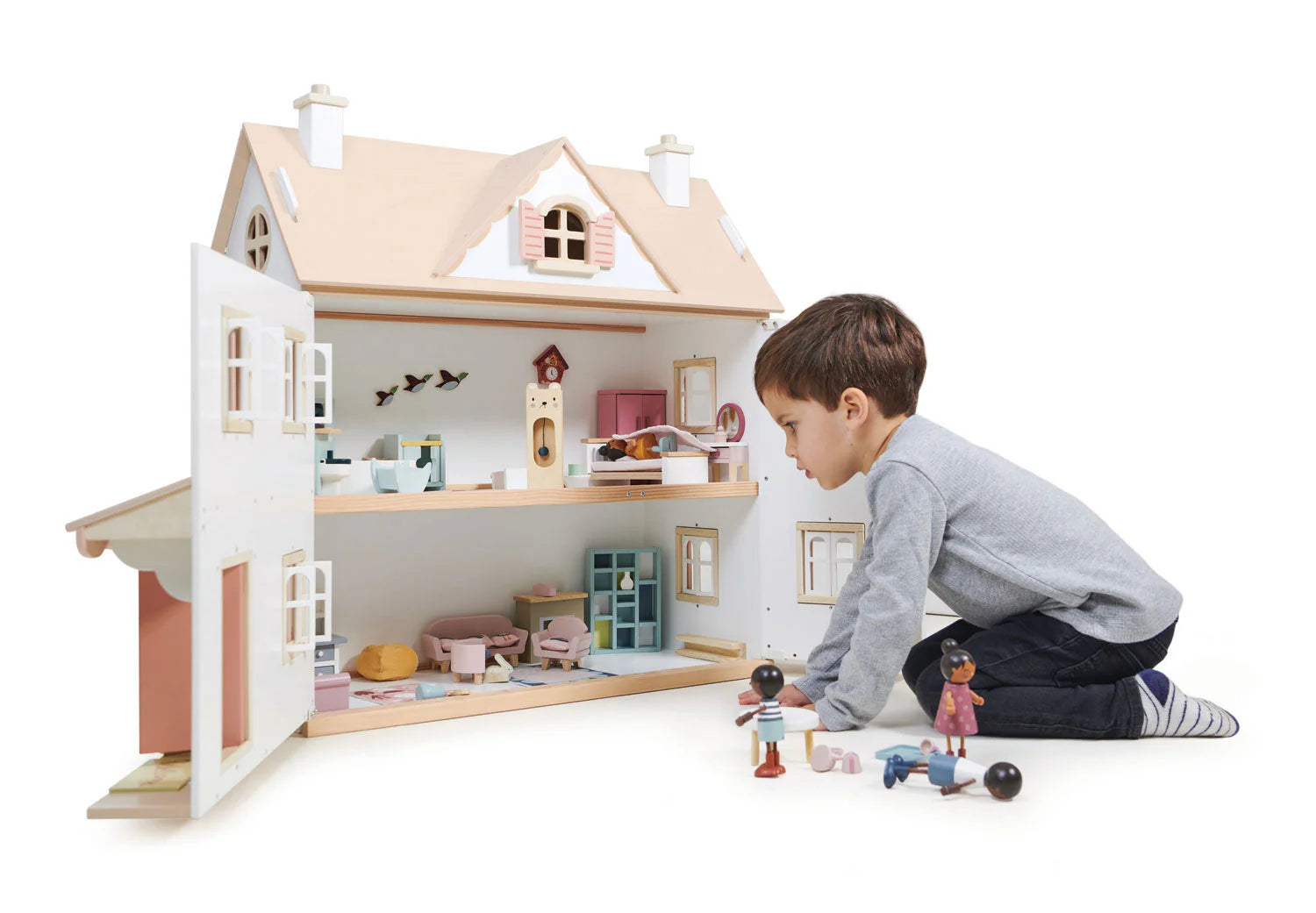 Welcome to our exotic Humming Bird House! A colonial style home with a veranda on either side of the front door, which is decorated with an abundance of flora! Can you spot the little hummingbird? Every window has opening and shutting shutters and window frames, and there is even a little window in the top gable. Large, spacious and ultra stylish, this house has 4 rooms plus space in the attic ready to be filled with our dolls house furniture sets. Roof panel is removable. Self-assembly required. Dolls and furniture sold separately.